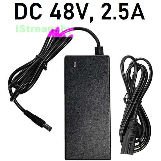 Блок питания 48В (45,6 – 50,4 В), 2.5 А, 120 Вт. Подходит для питания Poe коммутаторов и видеорегистраторов. Входное напряжение переменное от 100 до 240В, частота 50/60 Гц, постоянное выходное напряжение 45,6 – 50,4 (При сетевом напряжении 220 В), напряжение пульсаций (от пика до пика) не более 150мВ, номинальный выходной ток не более 2,5А, масса 0,42кг, время наработки на отказ 100 000 часов, класс защиты от поражения эл.током 2. Защиты: от КЗ, от перенапряжения, от перегрузки по току. Рабочая температура от -10 до +35°С, Корпус из термостойкого пластика. IP54 предназначен для установки внутри помещения и рассчитан на круглосуточный режим работы, 153х60х35 мм.