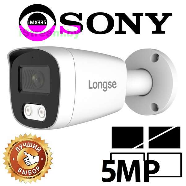 IPC-5IMX335iRP 2,8mm цилиндрическая камера Longse уличная 5МП (2592*1944) / 30fps. 1/2.8" SONY Sensor IMX335, HDR 120dB, ONVIF 19.12(Profile S/T/G), Starlight. ИК подсветка 30 м. Светочувствительность 0.001Lux день. Объектив 2,8мм. Питание 12VDC (700mA)/Poe IEEE 802.3af 8,5Вт. H.264 / H.264+ / H.265 / H.265+. Видеоаналитика: обнаружение вторжений (на основе обнаружения людей и транспортных средств), обнаружение пересечения линии (на основе обнаружения людей и транспортных средств), обнаружение празднования, обнаружение скопления людей (на основе обнаружения людей), обнаружение движения на основе обнаружения людей / детекция движения по секторам / маскировочные зоны. Корпус IP67 металл: 70 x 68 х 170 мм. P2P технология приложение BitVision.