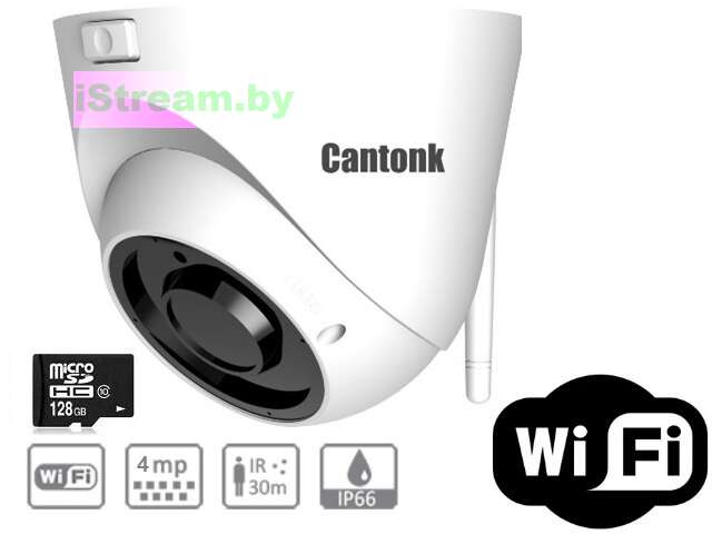 IP купольная камера уличная c WiFi(до 100м) 4 МП / 20fps. Матрица 1/3" CMOS Sensor, Fullhan Soc, With IR-CUT; 4MP HD Lens. Аудио вход RCA на кабеле. Main Stream: 4MP/25fps(Default), 1080P/30fps. H.264 / H.264+ / H.265 / H.265+. ИК подсветка 30 м. Запись на SD до 128GB (SD карта поставляется отдельно). Светочувствительность 0.01 Lux. Объектив 2,8 мм. Питание 12В. Видеоаналитика: детекция движения по секторам, маскировочные зоны. Корпус металл: ¢120 x 104 мм. P2P технология. ONVIF 2.4.