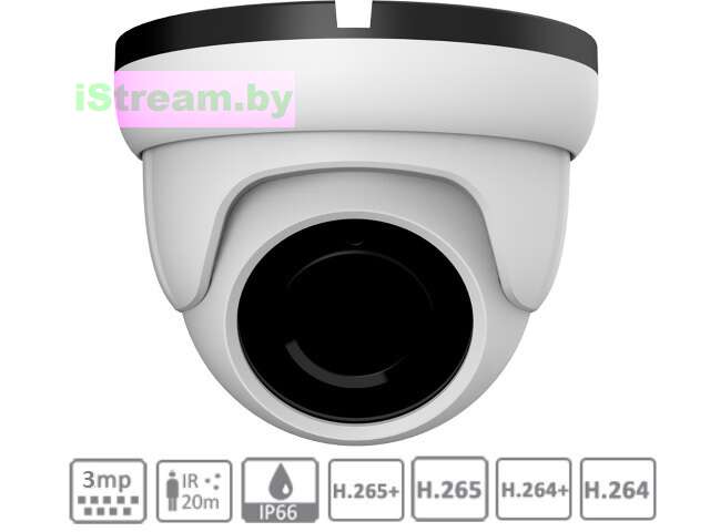 IP антивандальная камера уличная 3 МП / 15fps. Матрица 1/2.7" CMOS Sensor Fullhan 8830. ИК подсветка 20 м. Светочувствительность 0.005 Lux. Объектив 3.6мм (2,8 опционально). Аудиовход (RCA) на кабеле. Питание 12В. Видеоаналитика: детекция движения по секторам, маскировочные зоны. Корпус металл: ?94 x 69 мм. Пылевлагозащищенная IP68 от -20 до +60. P2P технология. ONVIF 2.4.