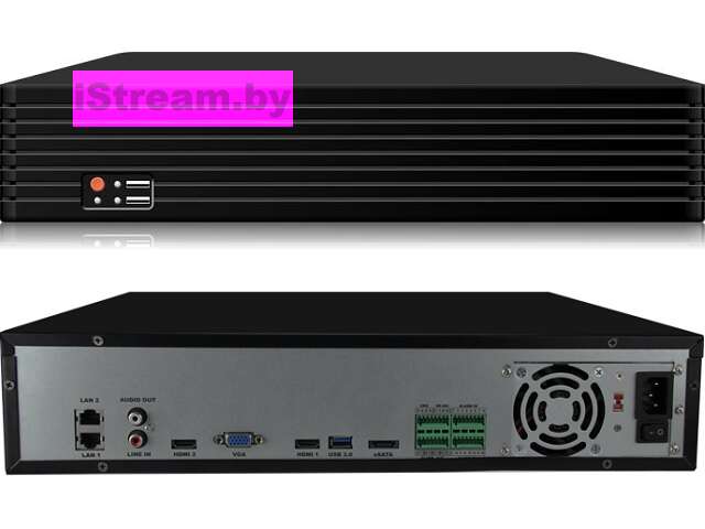 64 канальный IP сетевой видеорегистратор. Разрешение видеозаписи: IP 4K общий входящий битрейт < 300Mb. Видео выходы VGA, 2*HDMI. Аудио запись с IP камер, 1RCA выход. USB2.0 входы 2, USB 3.0 -1 шт, ESATA - 1 шт. Аварийные входы 16 / выходы 4. RS485 есть. Ethernet вход 2xRJ45 10M/100M/1000М. Запись по движению, расписанию, непрерывно. Формат сжатия H.265/H.265+, H.264/H.264+. Доступ через интернет компьютер (Windows) или смартфон (iPhone, ipad, Android, Android pad) через статический адрес и по P2P без постоянного адреса. Жесткий диск HDD SATA 3.5 - 8 ТБ до 8 шт. (64 ТБ суммарно) в комплект не входит. Русский и английский язык меню. Источник питания AC220/110V. Размер 440 * 450 * 965 мм, крепление в стойку 19" 2U. Вес 9,8 кг без HDD.