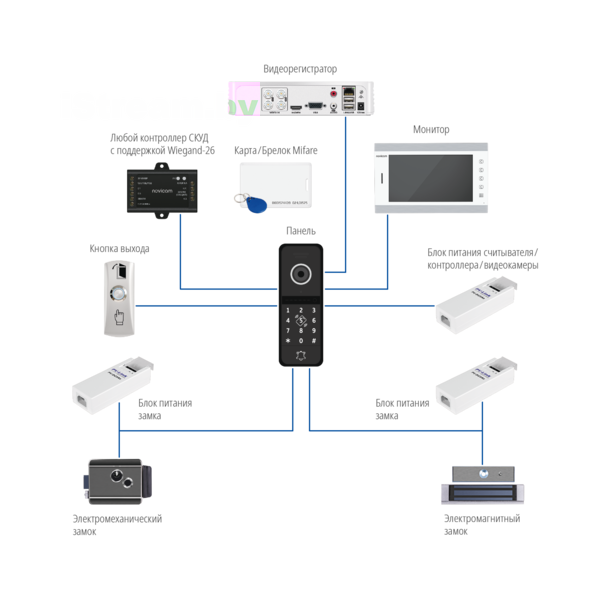 Встроенное реле даёт возможность управлять практически любым электрическим замком.