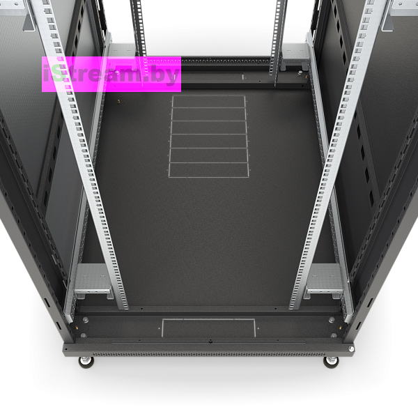 В верхней и нижней панелях предусмотрены отверстия под вентиляторный модуль, а также перфорация для естественной вентиляции, что упрощает организацию воздухообмена внутри шкафа.