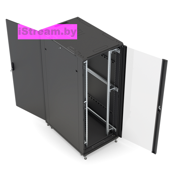 Преимущества ТXQ-2266-GS-RAL9005 Шкаф напольный 19″, 22U, 1166x600х600мм, двери передняя стеклянная, задняя металлическая, черный