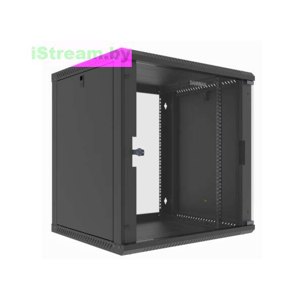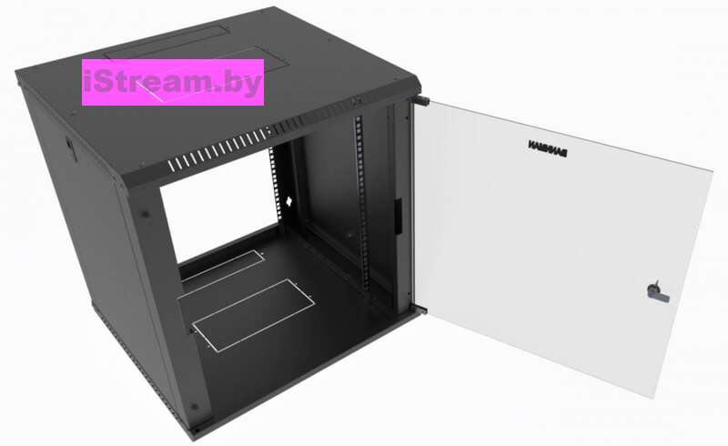 Каркас шкафа выполнен из стали с порошковым покрытием RAL9005 (черный). Съемные боковые стенки оснащены замками, обеспечивая быстрый доступ к оборудованию при обслуживании. Монтажная высота 6U (367 мм) позволяет размещать компактные конфигурации коммутационного и серверного оборудования. Максимальная нагрузка конструкции составляет 65 кг, что достаточно для установки активного сетевого оборудования средней плотности.